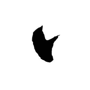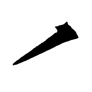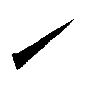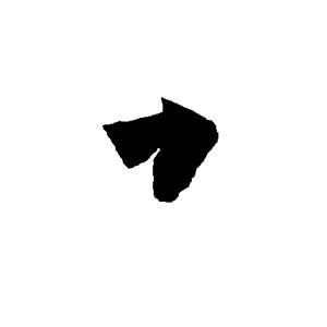 捺の形をした短い点。右下方へ短く力強く。末端で素早く按圧して収める。精悍で内力の強い筆画。