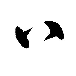 古典的で表現力豊かな組み合わせで、「頭部二点(呼応)」または「左右対称点」と呼ばれる。二つの点は形態において呼応し合い、字頭の安定感と霊動感(生き生きとした動き)を構成する。