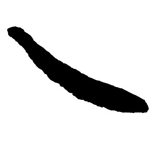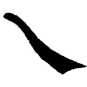 滑らかな弧を描きながら左下方へ。重から軽へ、あるいは粗から細へと変化させ、霊動的で弾力のある特徴を出す。