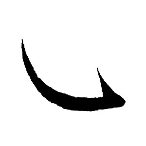 起筆で一旦上へ上げ、右下へ転じることで円弧状の「曲がった頭部」を作る。含蓄のある開始から、燕尾の舒展(じょてん:のびやかさ)へと繋げる。