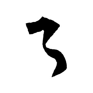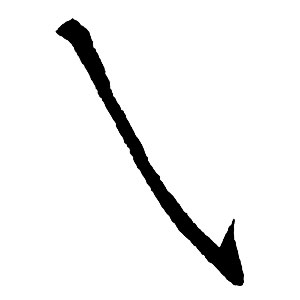 側鋒で入り、力強い頭部を作る。全体として滑らかに右へ湾曲させ、挺抜さの中に霊動感(しなやかさ)を含ませる。字形に変化を与える重要な技法。